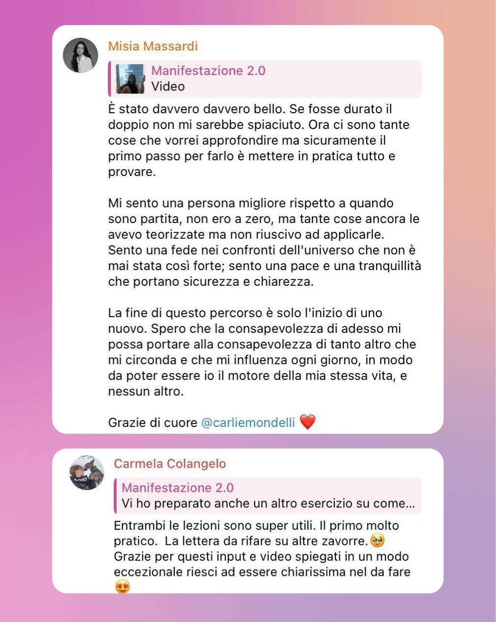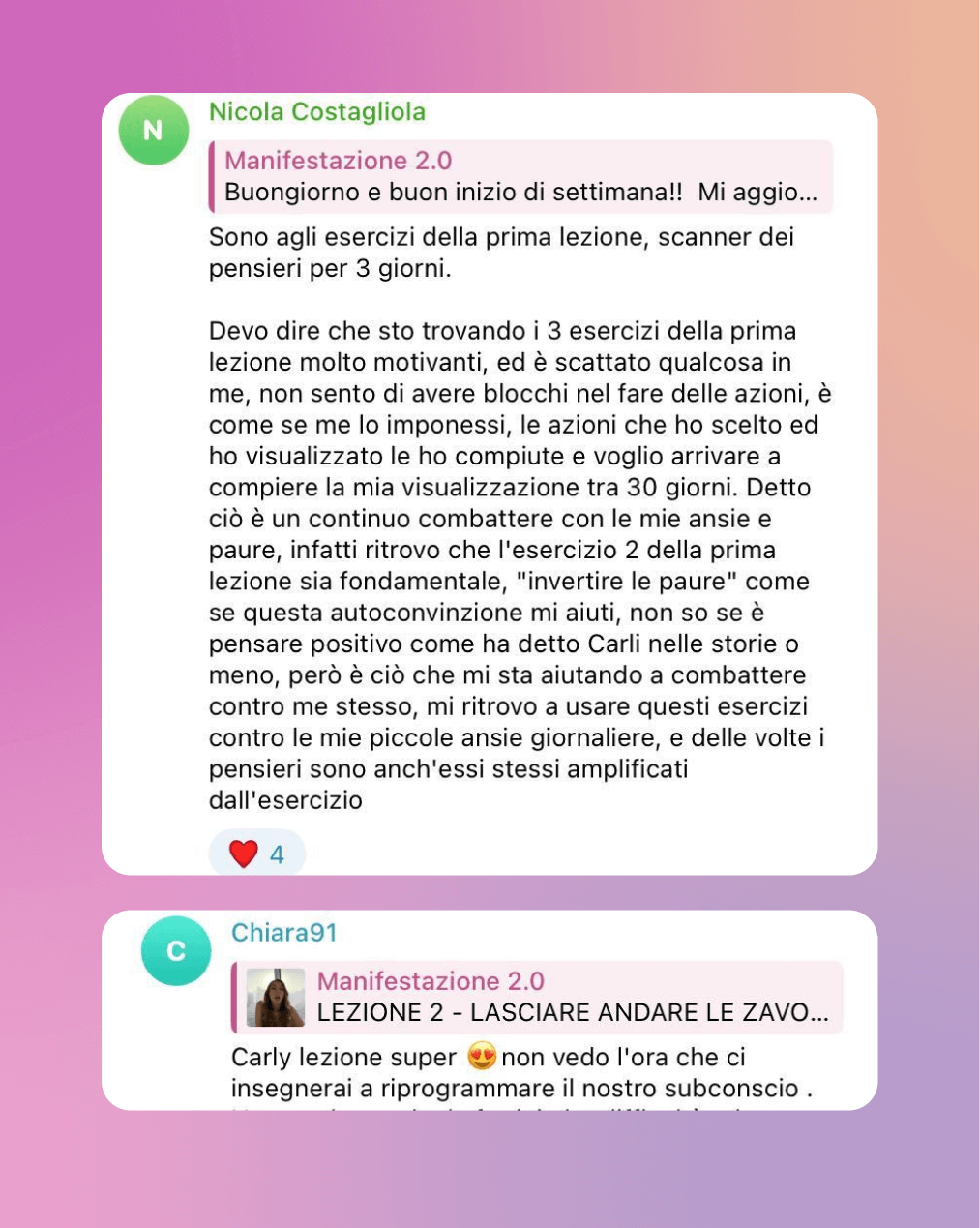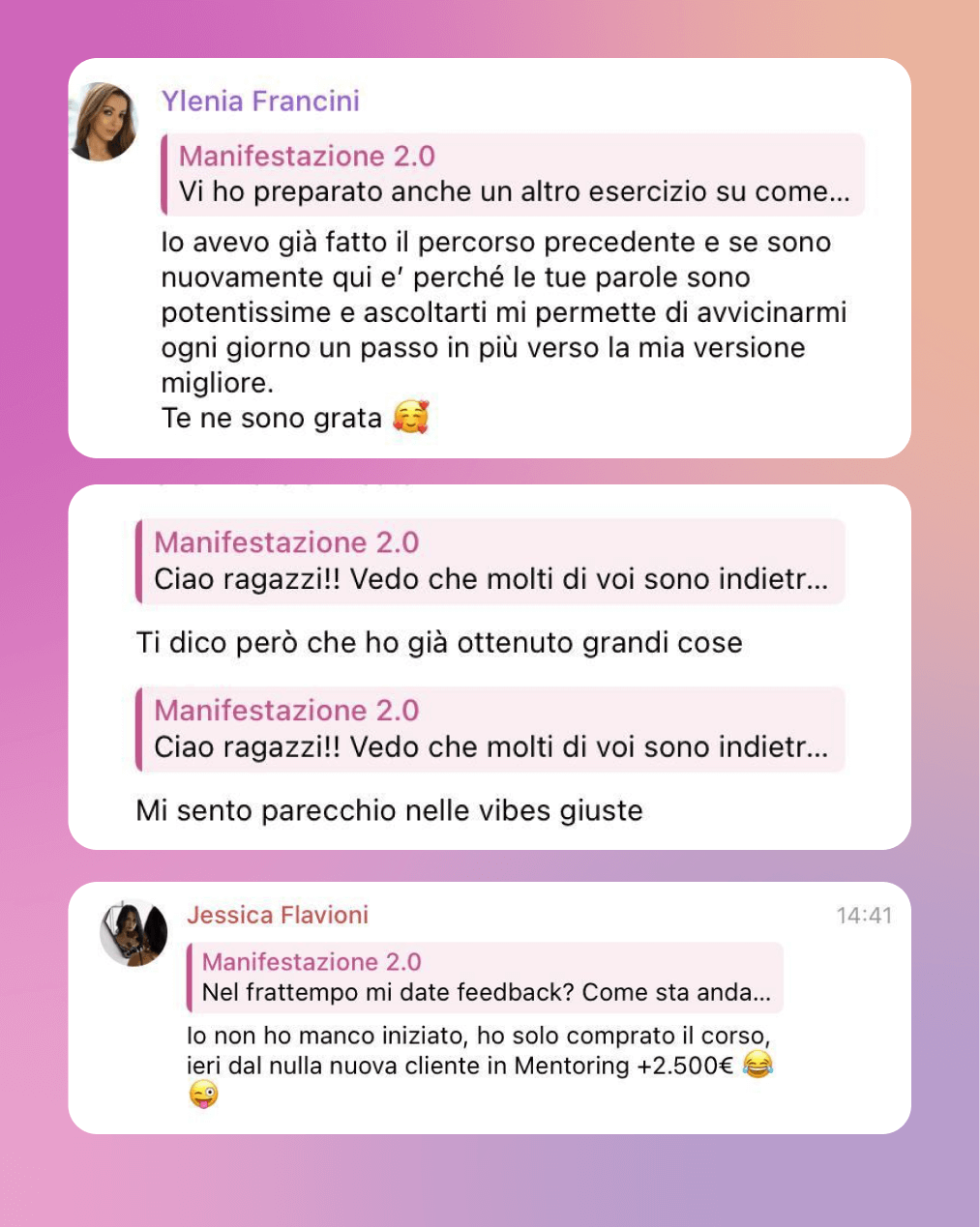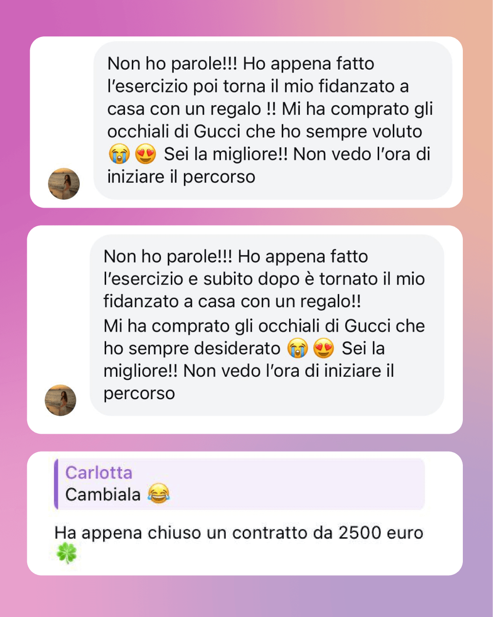 Sì, se ti senti bloccato/a, senza energie o in situazioni personali ed economiche che non ti rendono felice. È per chi vuole trasformare la propria vita a 360° gradie riprendersi il controllo con le tecniche della manifestazione che funzionano